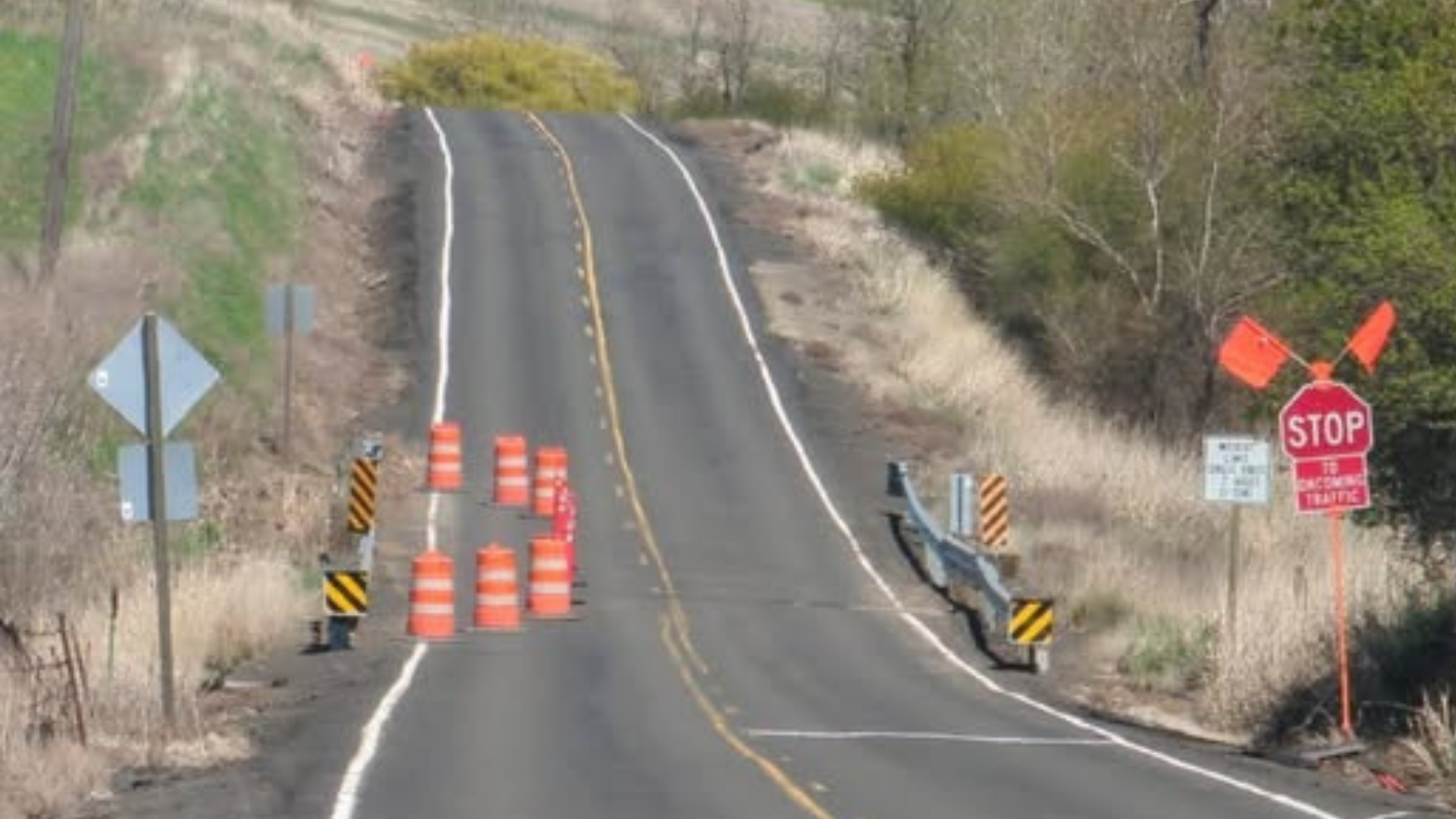 According to Whitman County Public Works (WCPW), Endicott-St. John Road has been reduced to one lane hear the Jones Road intersection.