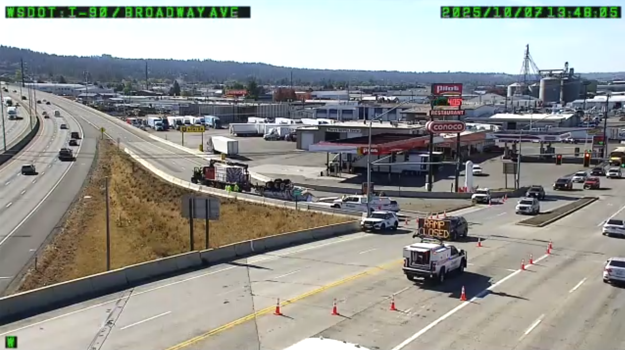 TRAFFIC ALERT: Overturned trailer blocking I-90 on-ramp at Broadway Avenue