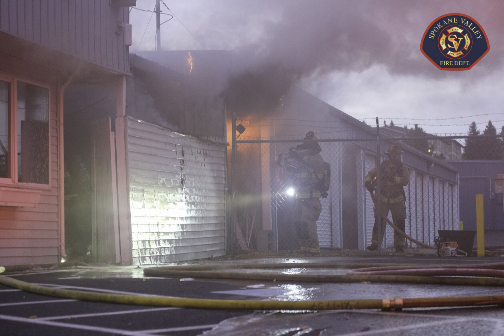 According to the Spokane Valley Fire Department, calls came in just before 7 a.m. saying there was a fire at a small single-story commercial storage facility on East Indiana Avenue.
