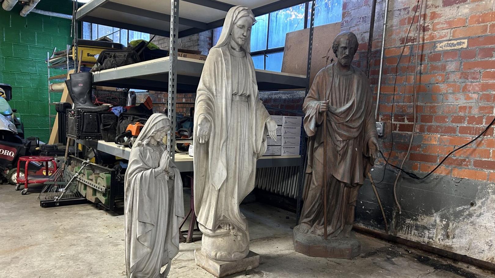 Providence Hospital groundskeepers discover religious statues hidden behind wall