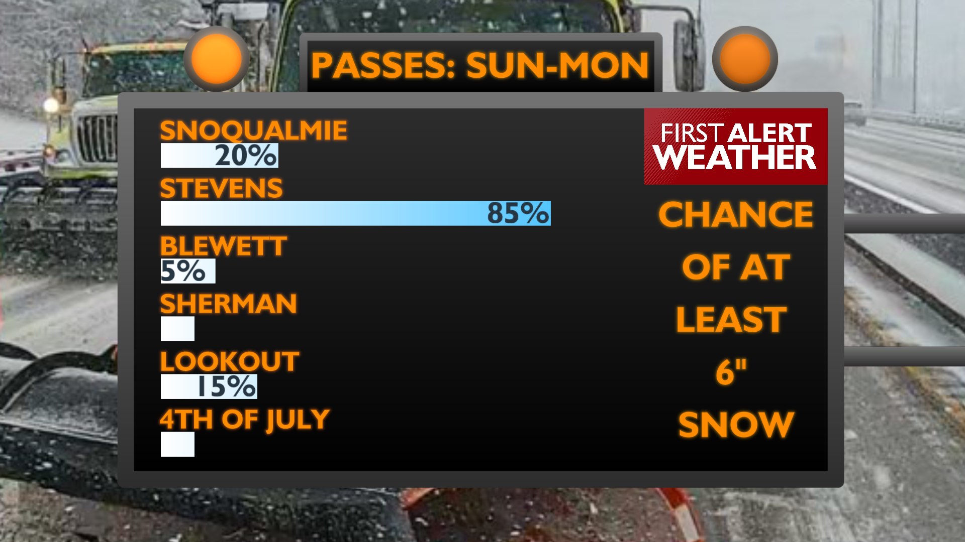 This Weekend: We’ll see long periods of moderate rainfall with a few hours of damp and breezy conditions in between. Gusty conditions may limit how much rain we see in Central Washington. Temperatures will be cool with highs only in the 40s. Expect snow to start falling on mountain passes on Sunday morning. Snow in the North Cascades could cause significant travel disruptions for this early in the season.