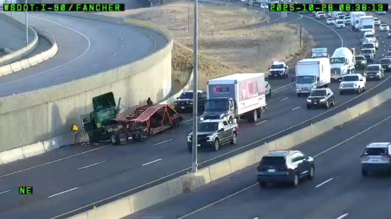 Jackknifed semi slows westbound I-90 traffic