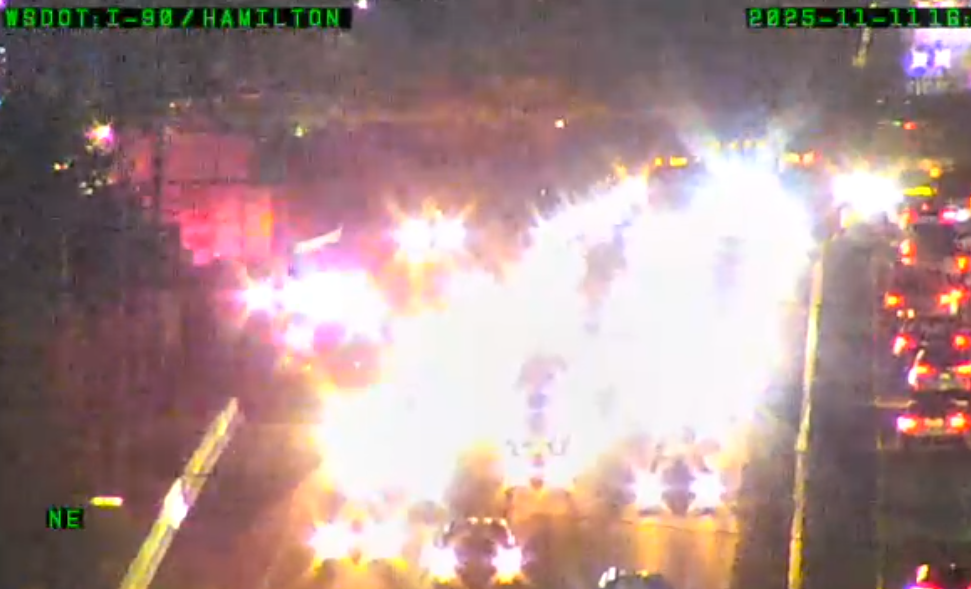 SPOKANE, Wash. — Traffic is backed up on I-90 near the Hamilton exit in Spokane on Tuesday evening, according to Spokane Regional Transportation Management Center.