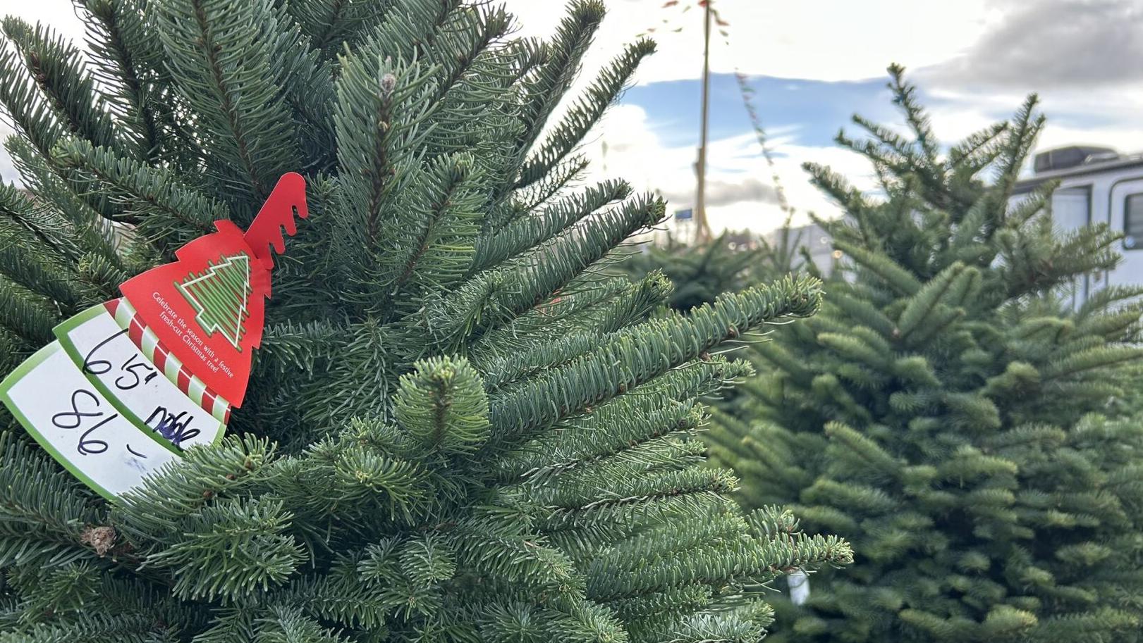 SPOKANE, Wash. — Christmas trees arrived early in downtown Spokane this year, as 180 noble firs now stand ready for sale in the Grocery Outlet parking lot, weeks before Thanksgiving.