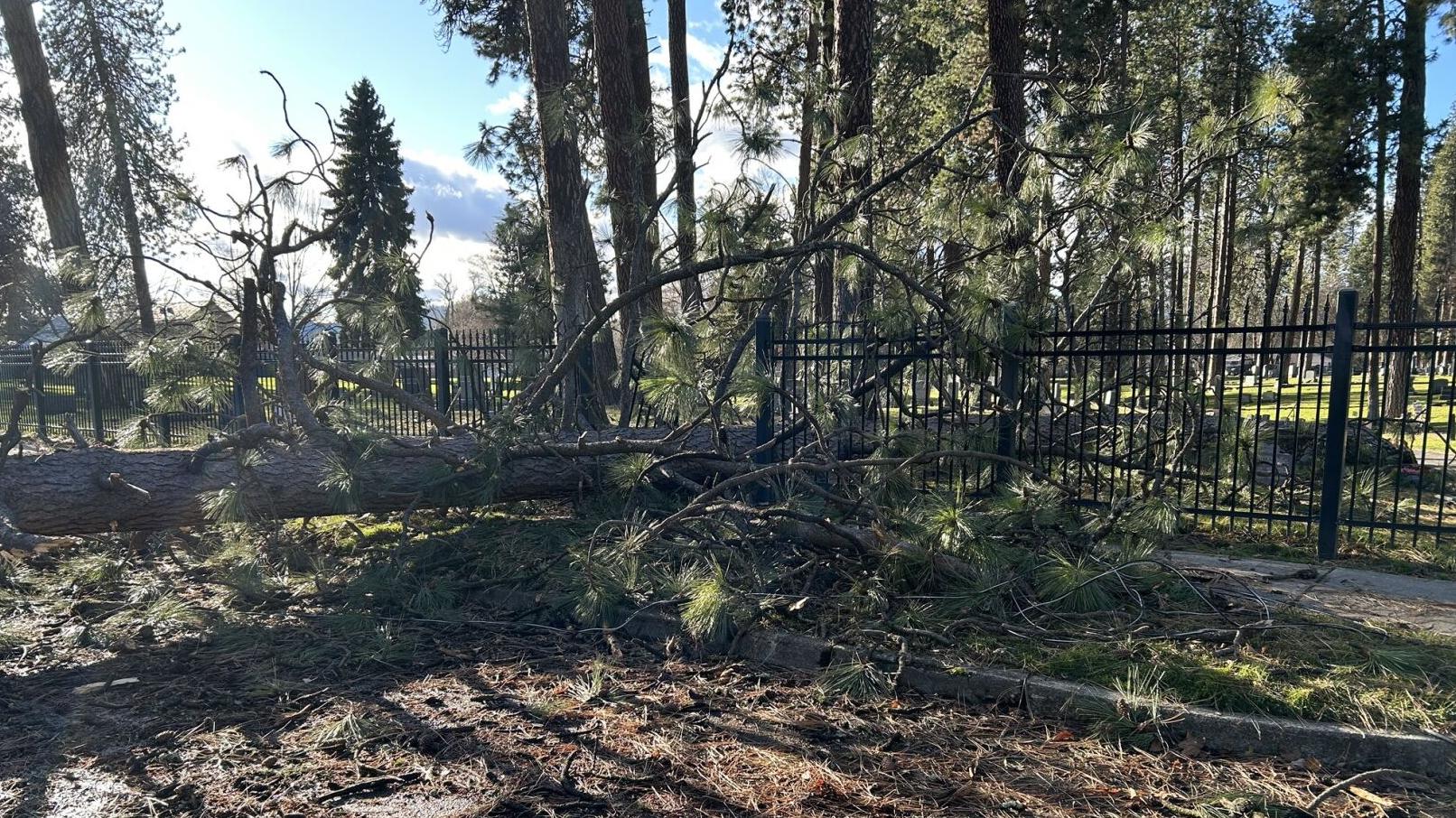 COEUR D’ALENE, Idaho — Cleanup efforts continue across Coeur d’Alene following this week’s windstorm, with Forest Cemetery among the hardest hit areas in the city.