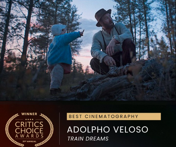 Train Dreams’ Director of Photography Adolpho Veloso took home the honor at a ceremony in Los Angeles. It’s nominated for several Golden Globes as well.