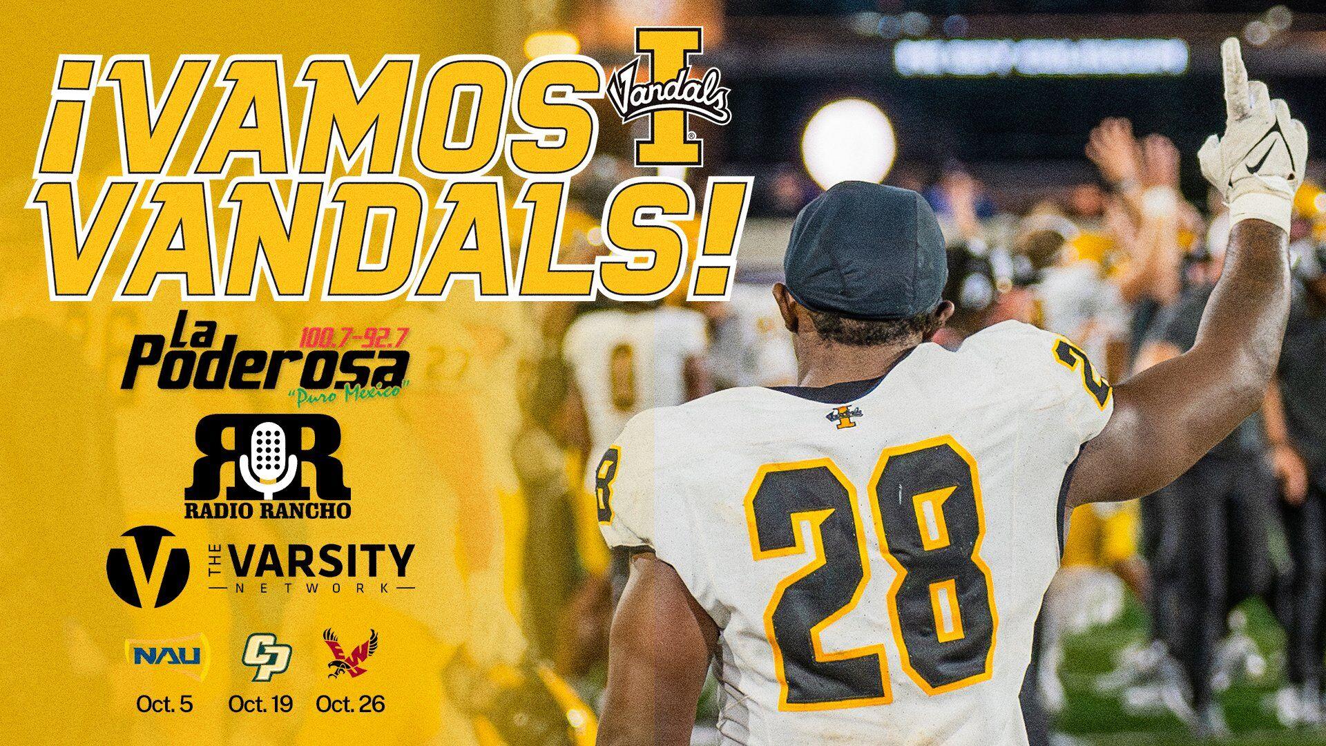 MOSCOW, Idaho -- Vamos los Vandals! Three upcoming U of I home football games will be broadcast in Spanish in October. U of I has partnered with Radio Rancho to air three games on La Poderosa 100.7 FM...