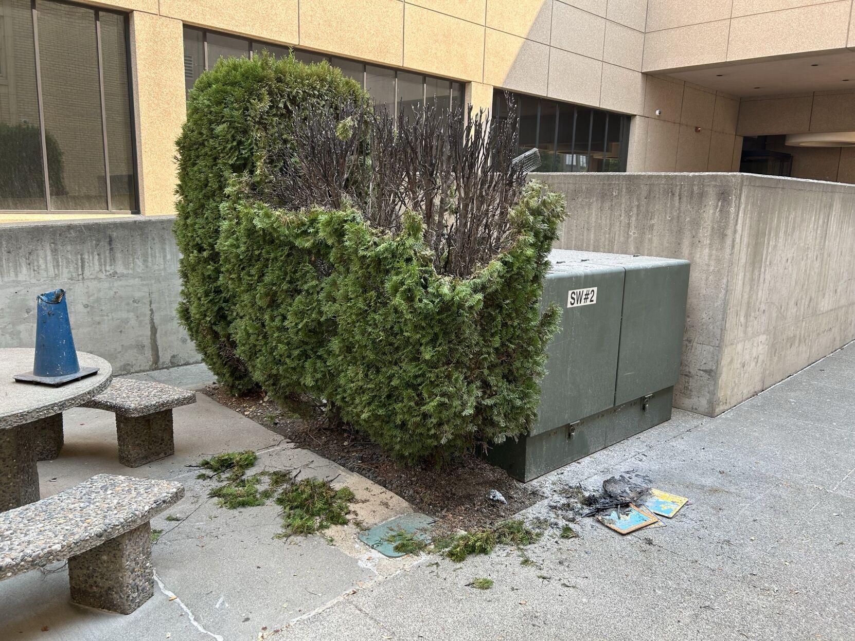 Multiple small fires lit outside Spokane Public Safety building overnight