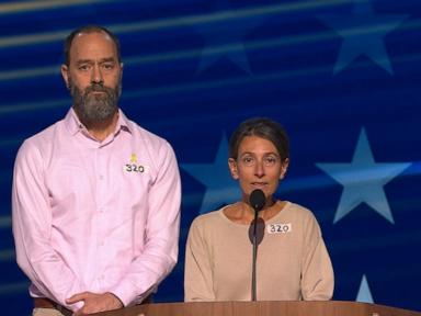 Jon Polin and Rachel Goldberg, the parents of Hersh Goldberg-Polin, one of the American-Israeli hostages, got emotional as they took the stage to a huge ovation.