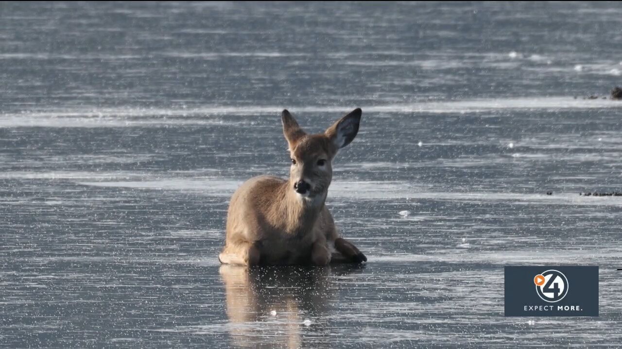 WATCH: Firefighters rescue stranded deer from frozen lake