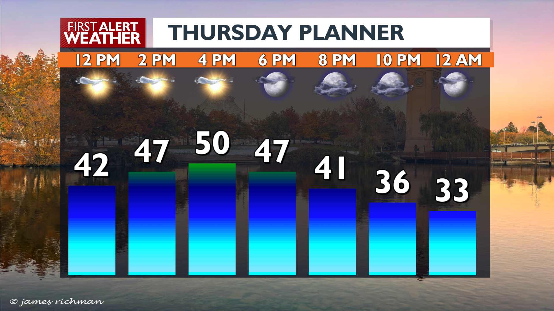 Sunshine with a few clouds today and 50. Clouds and cold tonight down to 29, then partly cloudy and mild with 53 for Friday. What We're Tracking Sunshine with evening clouds moving inCold tonightFrida...
