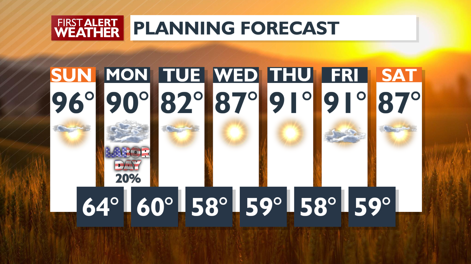 The heat rolls on into Sunday, which will be the hottest temperatures we've had in a few weeks. Upper 90s and low 100s will keep fire danger high ahead of a cooler Labor Day that could get gusty and s...