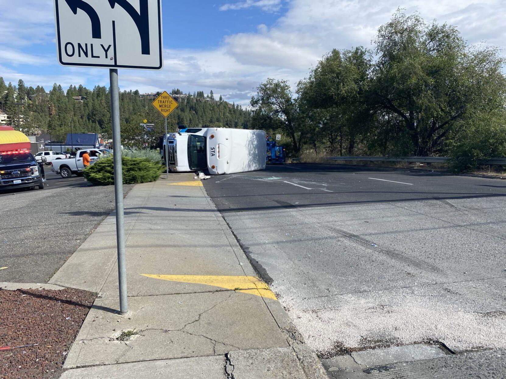 STA van flipped, blocking lanes in north Spokane