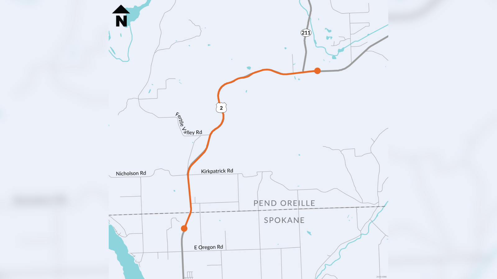Construction closing lanes on Highway 2 at Pend Oreille/Spokane County line