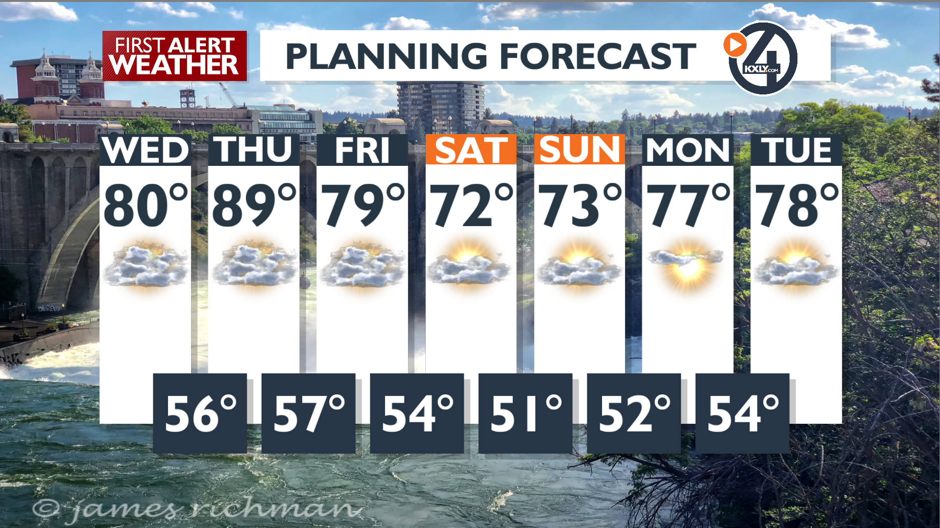 This afternoon we will see sunny skies with highs in the 70s and low 80s. Bonners Ferry, Northport, and Republic, however, could see more rain. Tomorrow will be sunny and hot but cooler and wetter day...