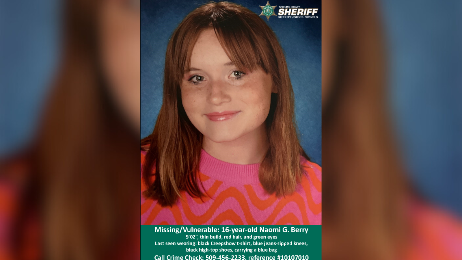 SPOKANE, Wash. - The Spokane County Sheriff's Office is asking for the public's help in finding a missing 16-year-old girl. Naomi Berry was last seen July 29 when she left her home on N. Stevens Stree...