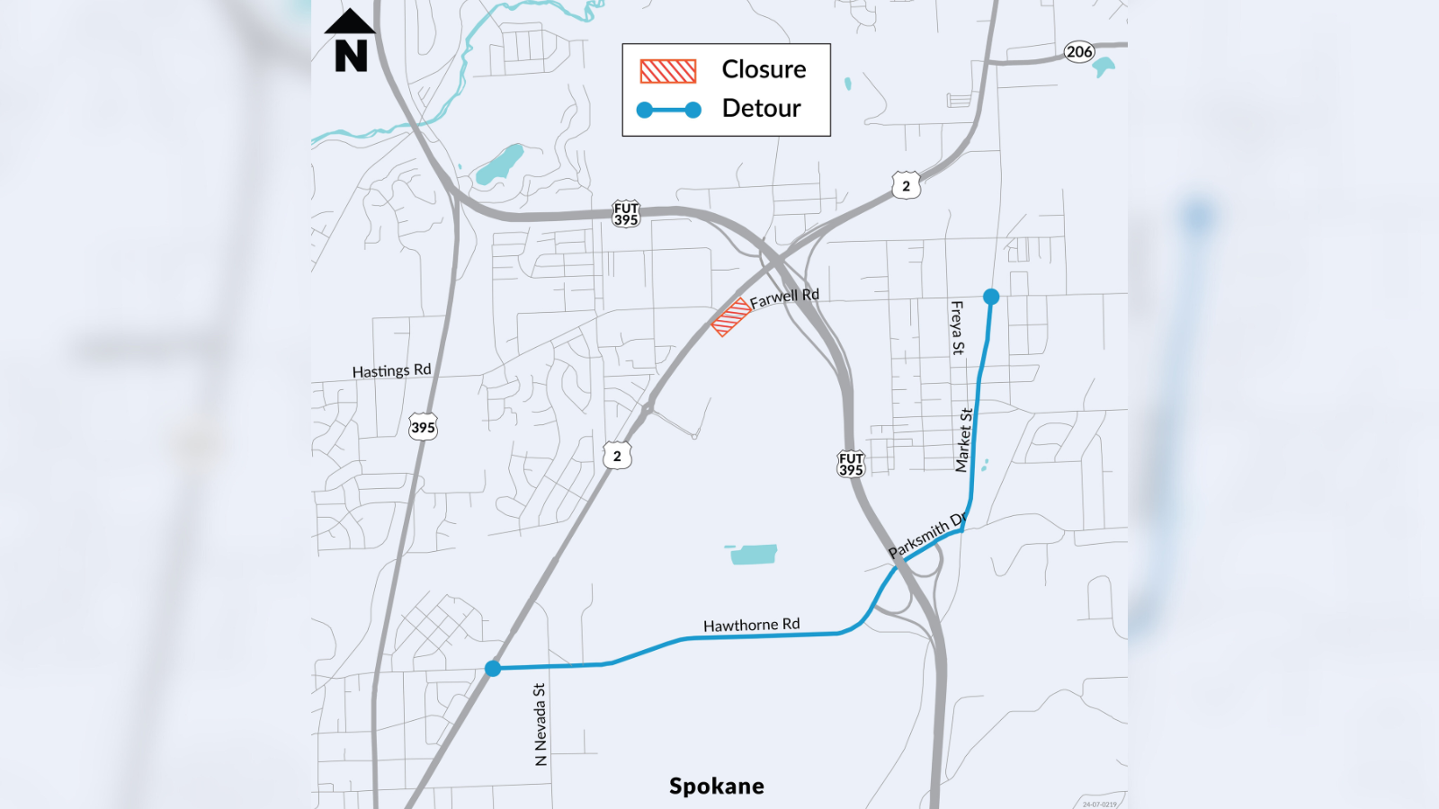MEAD, Wash. -- A heads up for drivers. Eastbound Farwell Road off Highway 2 is closed for construction in the area for a month. According to the Department of Transportation, sewer and water lines are...