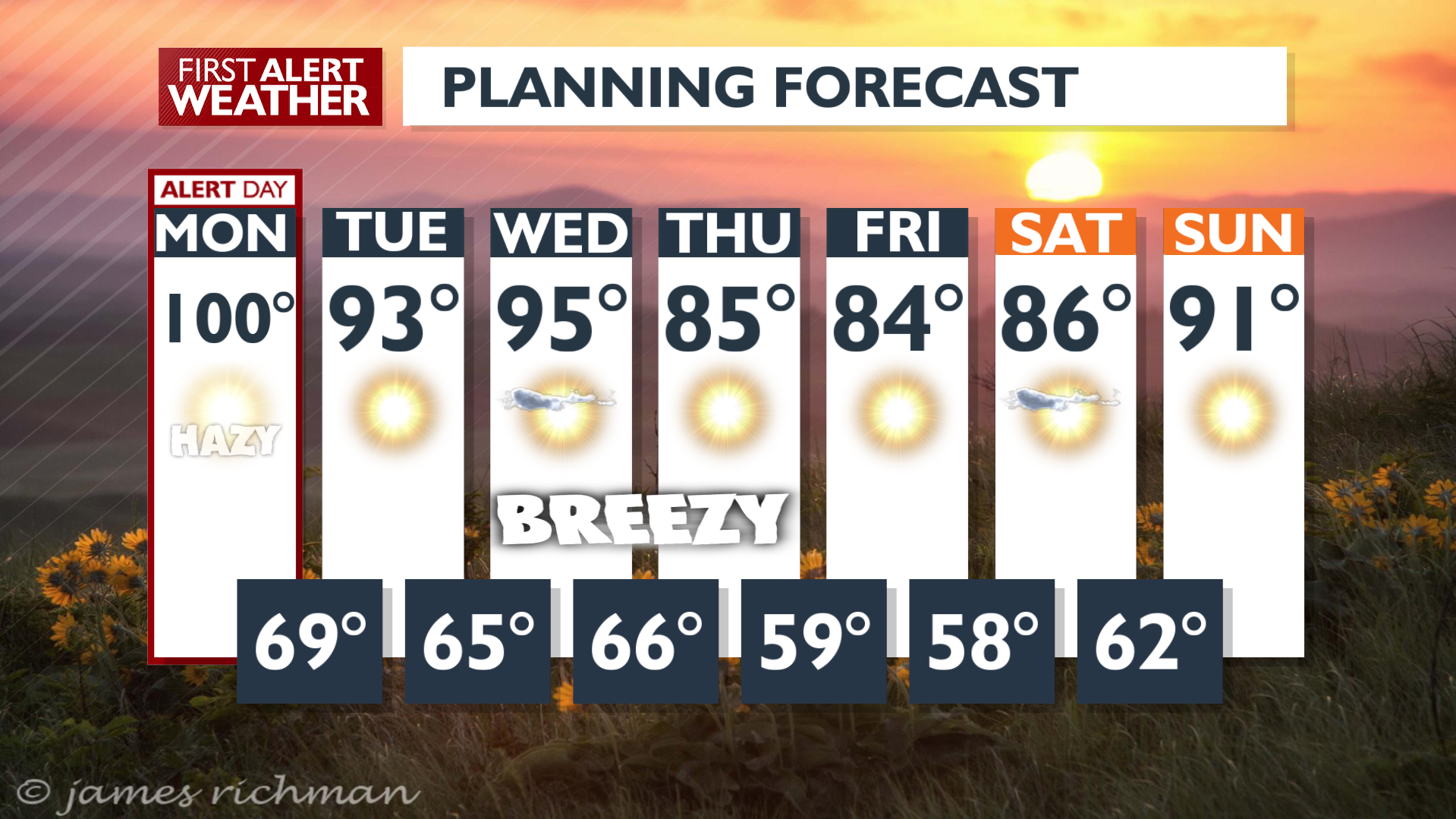 Monday will still be brutally hot, but not as nuts as Sunday was. We only have to get through one more day before it will start to be cooler again. Now for a few days cooler will mean the mid-90s, but...