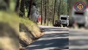 WATCH: Spokane Valley Fire stops multi vehicle fire from burning up wooded hillside