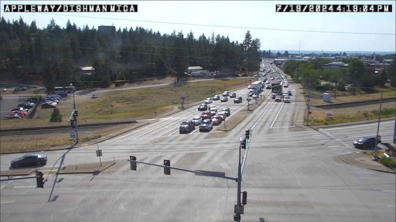 SPOKANE, Wash. - UPDATE, July 19, 2024 4:42 p.m. Traffic cameras show the roadway has been cleared and traffic is moving again after railroad crossings were stuck in the down position near Appleway Bo...